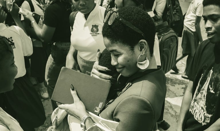 We returned to the founder’s alma mater, Perfect Praise Comprehensive College, where she studied from JSS1 to JSS3, bringing the Voya Academy team along. Our guest speaker, Orezi Mena, aka The Creative Mena, shared his own secondary school experiences first, setting a foundation the students could relate to.
